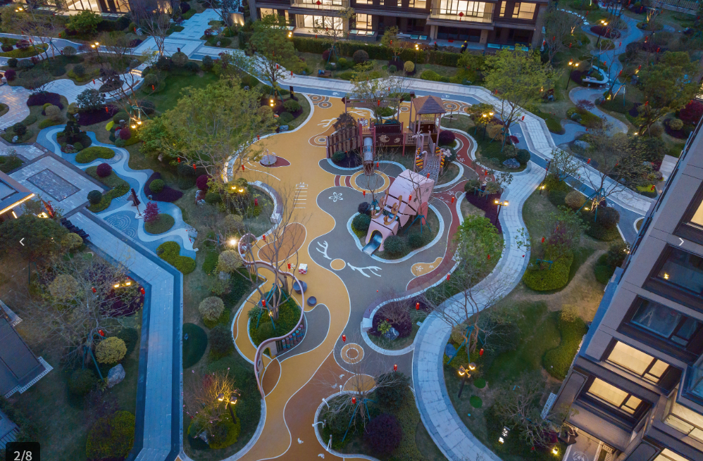 在约4200㎡的中央景观区内,项目设计了邻里会客厅、全龄儿童乐园、林下休闲吧等16大全龄场域。