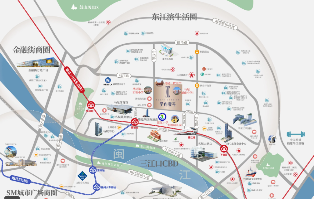 交通方面,项目周边3公里内有5个地铁站,最近的是儒江站。未来福州市地铁2号线东延线的规划建设将进一步提升区域交通便捷性。