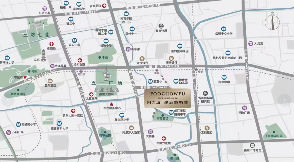 项目周边的教育资源极为丰富,三公里范围内有119个幼儿园、43个小学和26个中学。福州传统名校如群众路小学、福州延安中学等都在这个范围内。