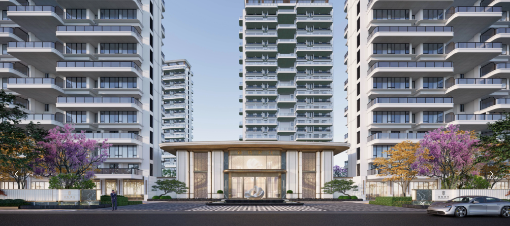 项目整体设计采用海派摩登风格,打造了约10米高的气派门庭,以及“一环·二轴·六景”的立体垂直景观体系。社区还规划有星空水苑、观景平台等设施,营造水陆空三层次园林体验。
