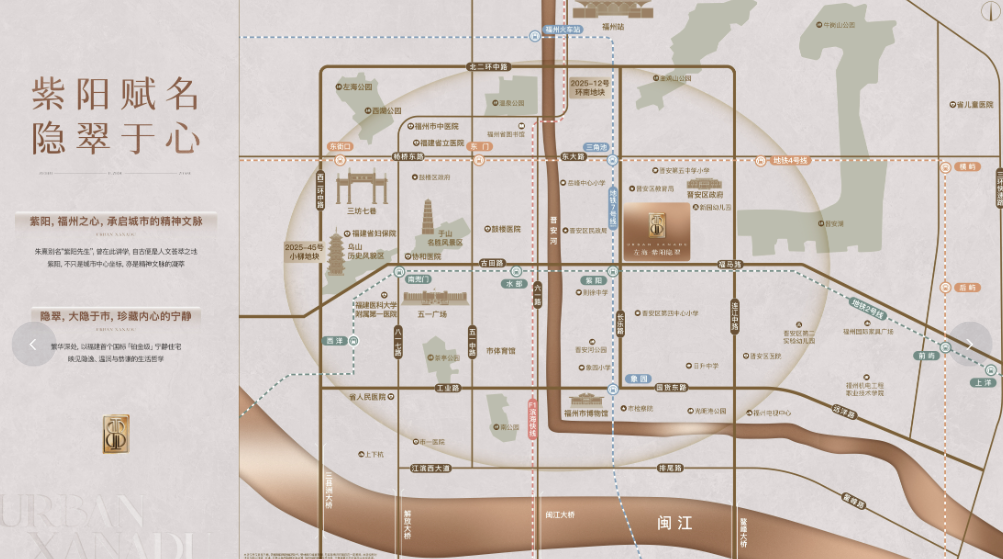 东面连接东二环、晋安湖,南向毗邻世欧广场商圈,使左海紫阳隐翠处于福州在售豪宅浓度最高的区域之一。