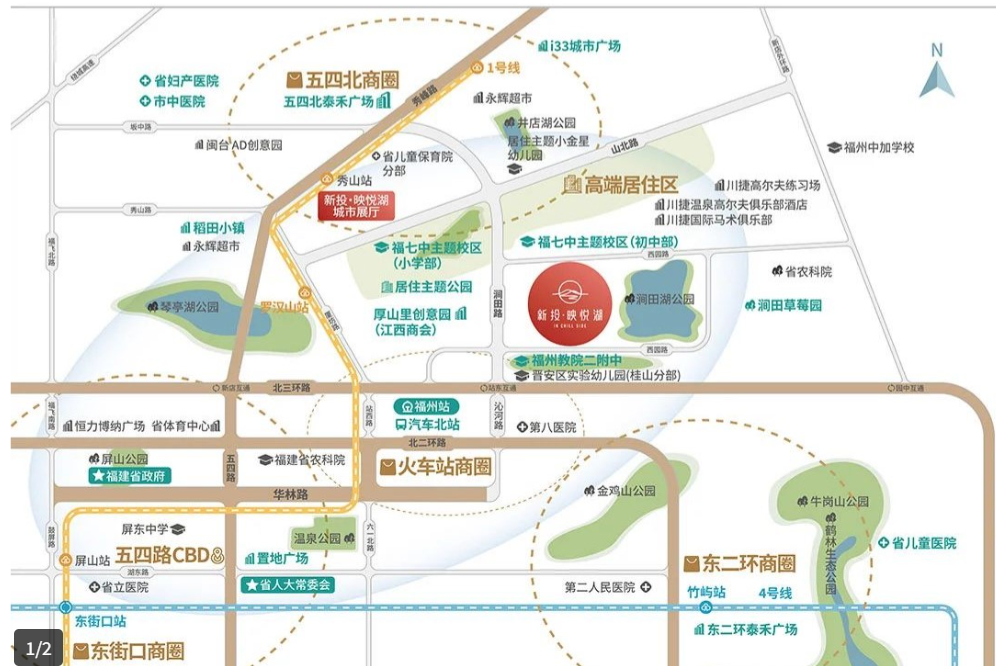 新投映悦湖位于福州晋安区新店板块,西园路北侧、涧田湖西侧,属于五四北板块的热门区域。