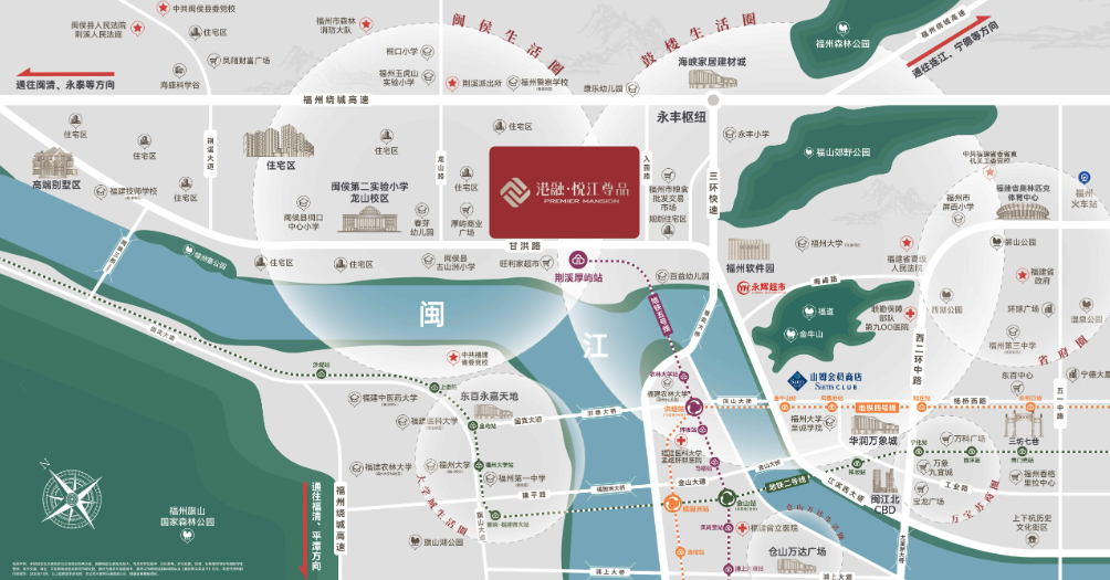 港融悦江尊品位于闽侯县荆溪镇厚屿村,行政隶属于闽侯县,而非福州市区。这是客观事实,需要购房者明确 认知:闽侯县与福州主城区在行政体系、教育归属上确实存在差异——项目划片小学为闽侯县第二实验小学龙山校区,属于闽侯县教育体系。对于希望子女就读福州市属学校的购房者,这一差异需要纳入考量。虽然项目毗邻鼓楼西,物理距离上接近主城区,但县域的户口、教育体系与福州主城区仍存在隐性区别。