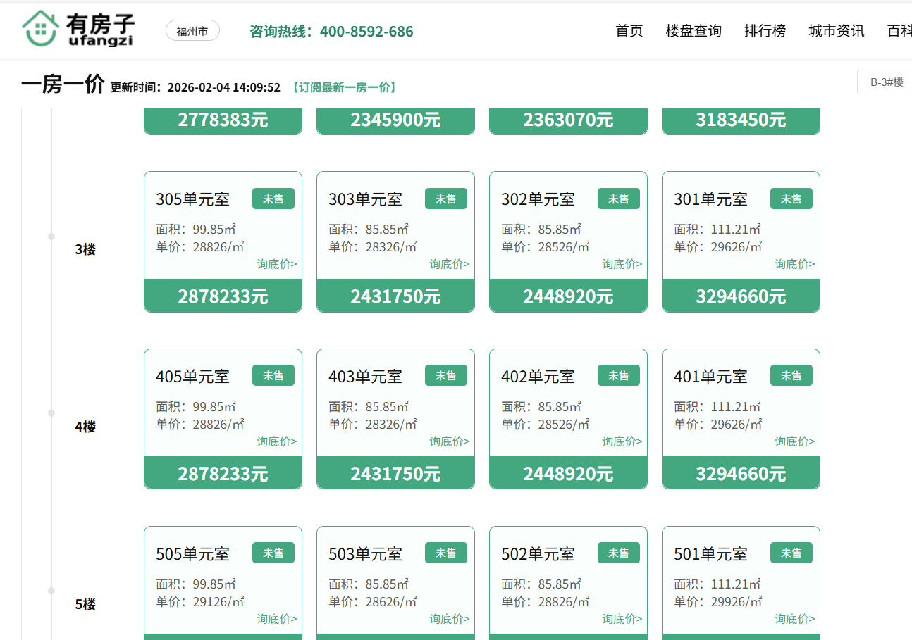 价格是榕发云启最受争议的一点。根据福州市不动产登记交易平台公示及网络信息,榕发云启的预售均价已触及约30000元/㎡,部分户型甚至更高。