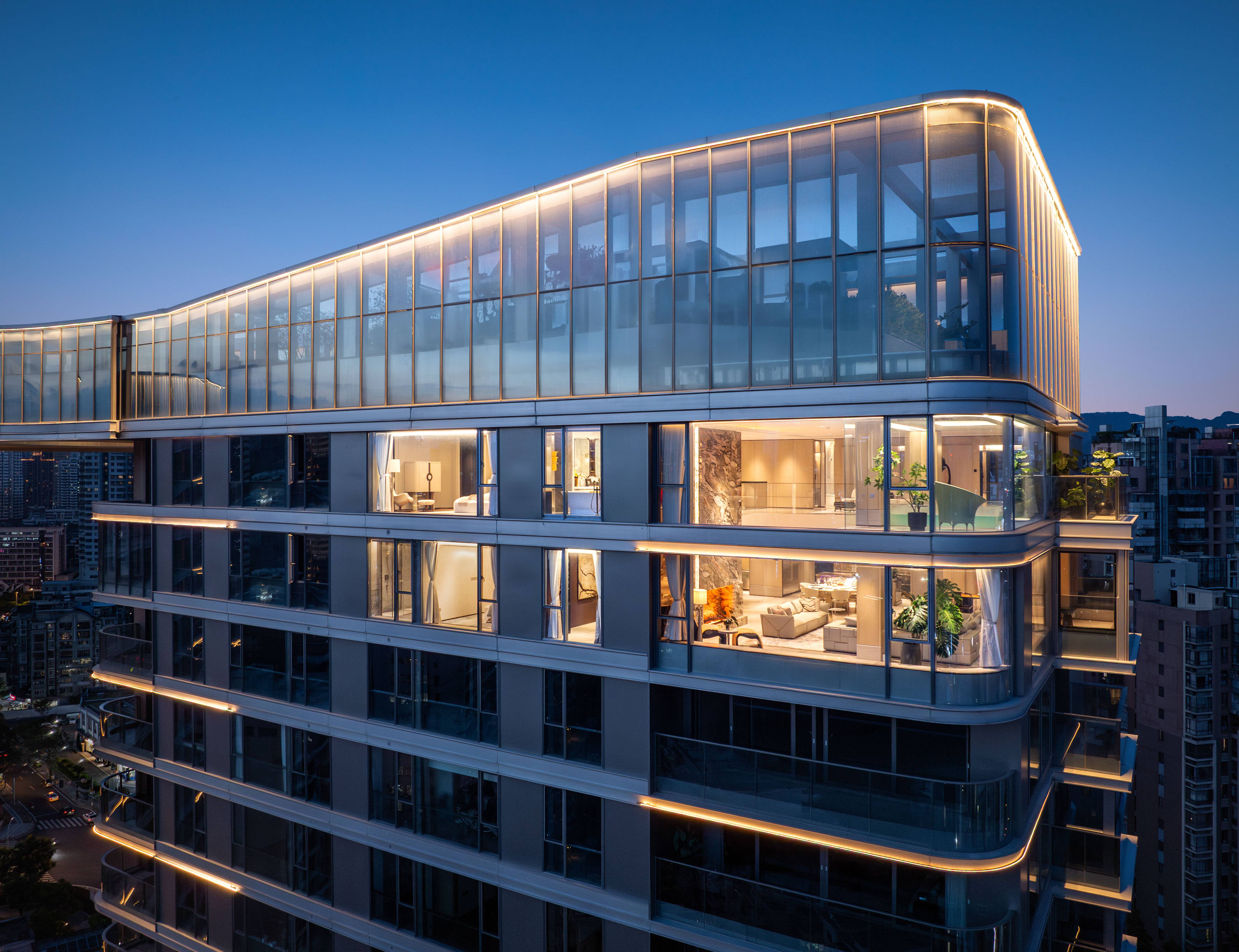 其硬件配置堪称奢华:双塔建筑以“福州之眼”的空中连廊形成视觉地标;约2500㎡的业主私享会所“龙庭荟”提供超五星级服务;精装标准则汇集了嘉格纳、汉斯格雅等国际一线品牌。报价约8万元/㎡,总价门槛在1500万元以上,顶层复式更是可达五六千万元级别,彰显其顶级豪宅定位。