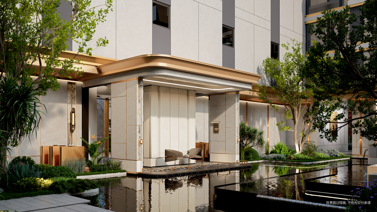 园林景观方面,项目以“缦宸水院”为主题,打造超200㎡宸辉水院、花素缦庭、宸乐天地等沉浸式景观序列,约8米挑高、约15米面宽的酒店式入户大堂,让归家充满仪式感。