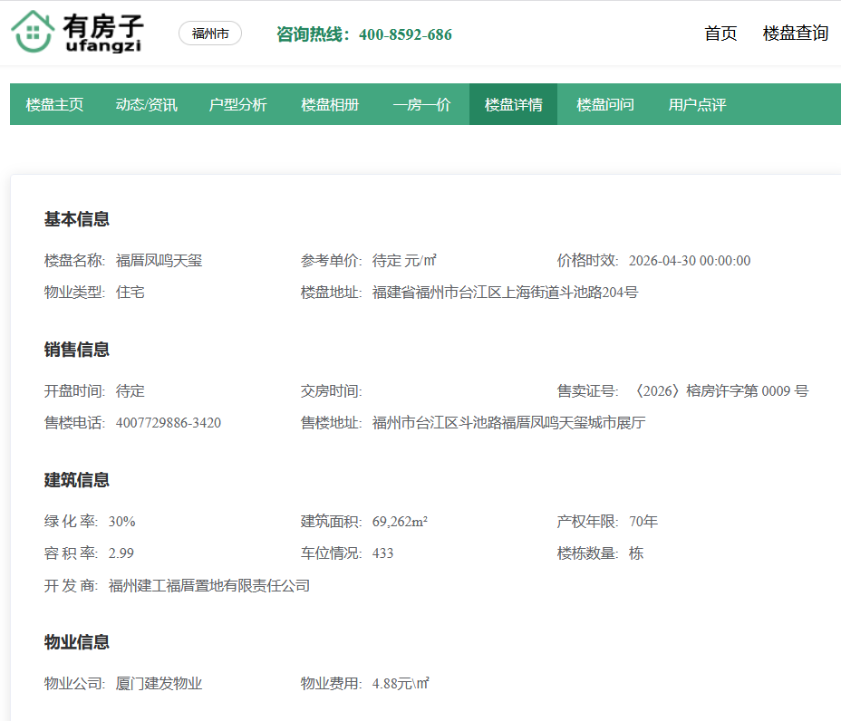 福厝凤鸣天玺【售楼处电话:4007729886 转 3420】