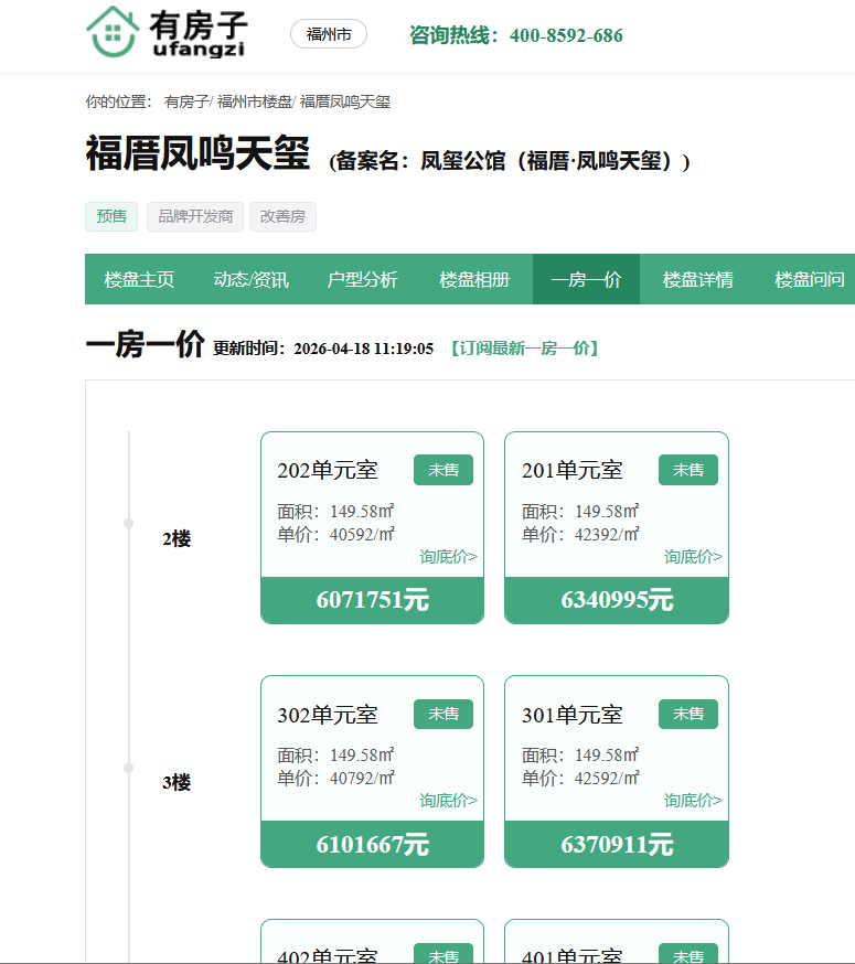 价格是福厝凤鸣天玺最核心的争议点。根据多个渠道信息,项目的市场放风价约在每平方米3.8万至4.8万元之间。按此计算,最小149平方米户型的总价也要接近600万元,总价区间约在600万至1000万元。