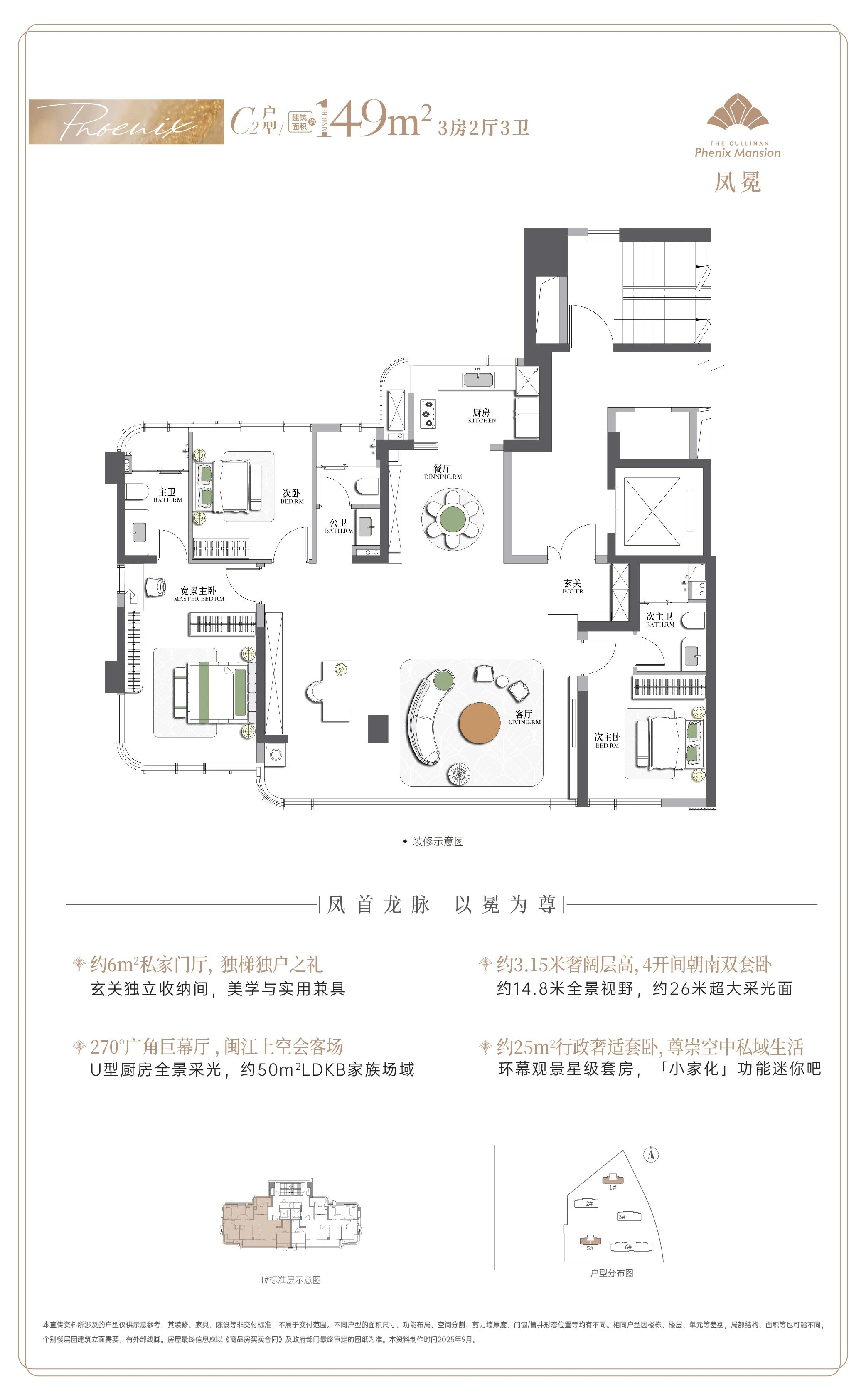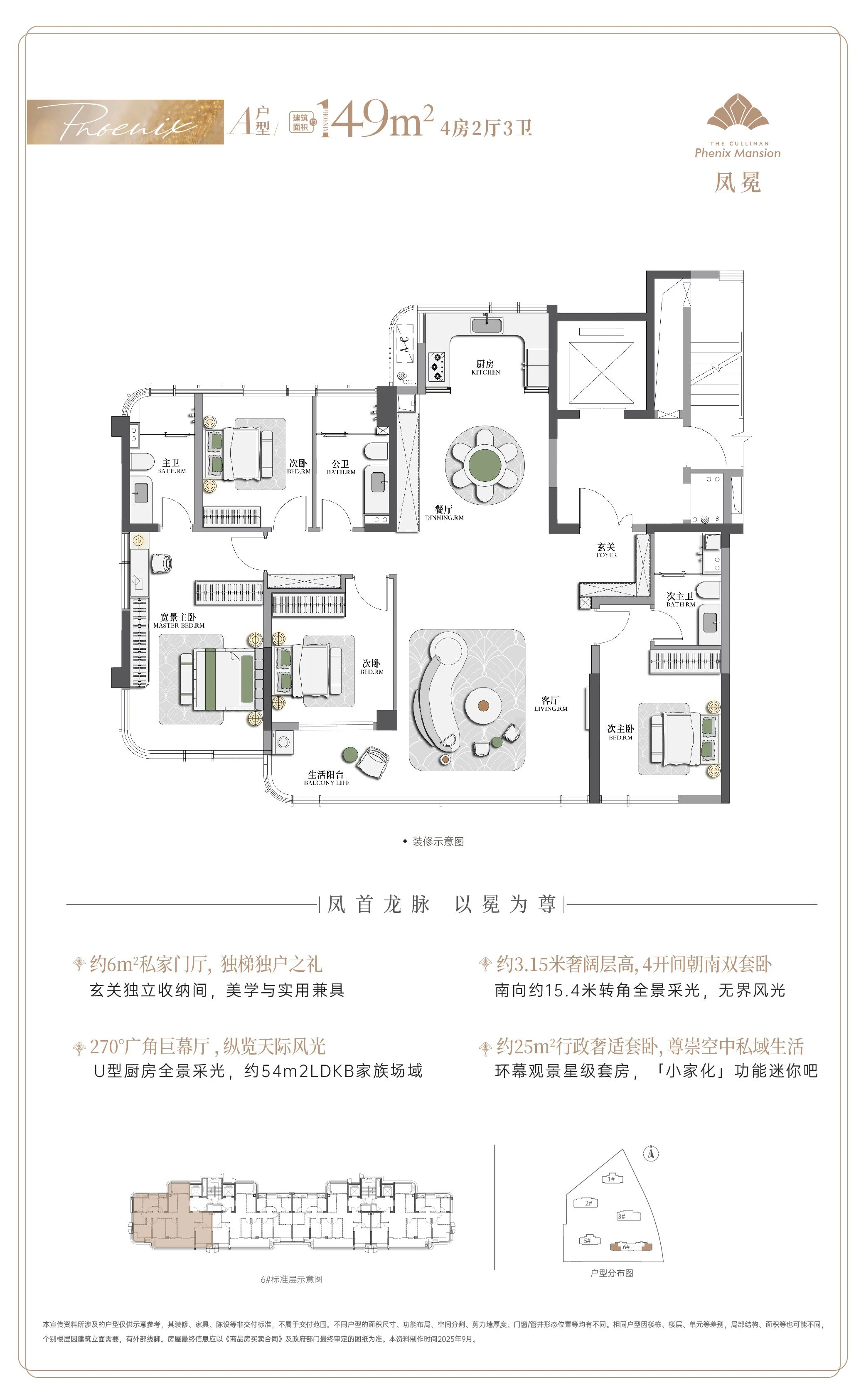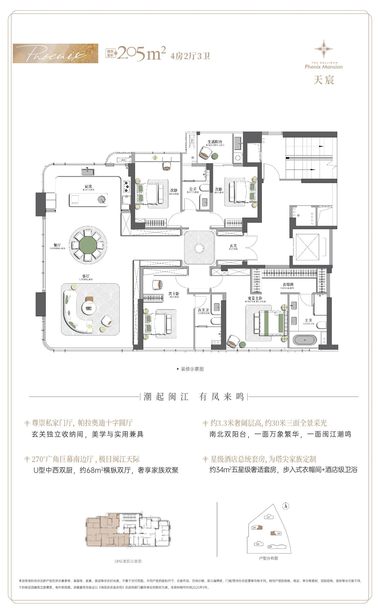 福厝凤鸣天玺的产品定位极为明确——全部户型均为大平层设计,主打建筑面积约149至205平方米的大户型。具体来看,项目主力户型包括149平方米、175平方米和205平方米三种,全部为四房及以上设计。