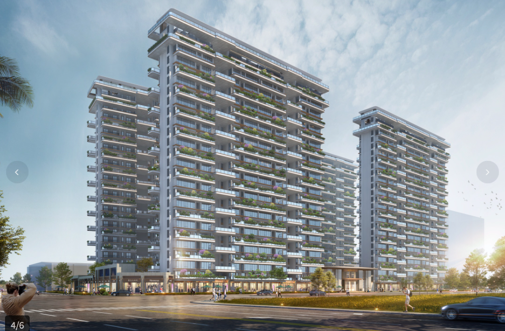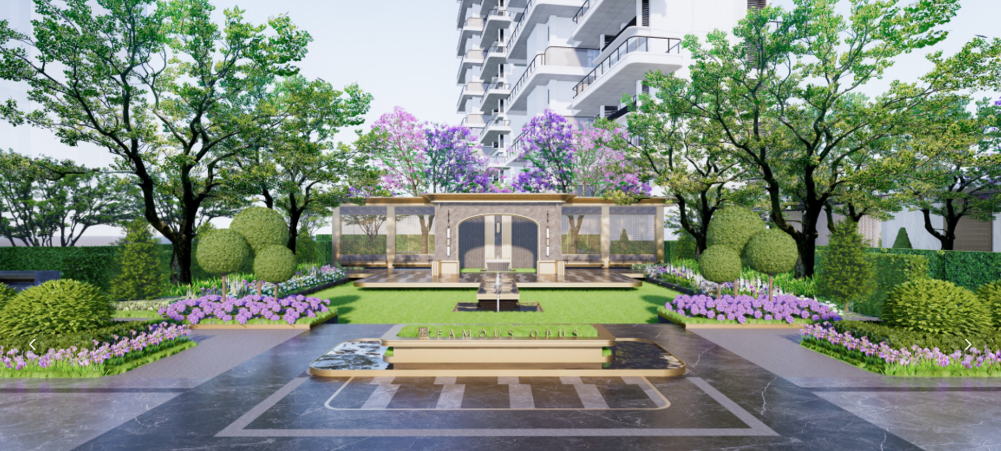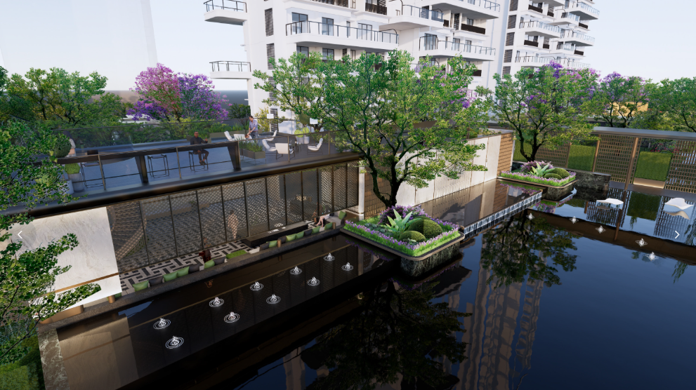 项目规划设计采用海派摩登风格,打造了约10米高的气派门庭,以及“一环·二轴·六景”的立体垂直景观体系,营造水陆空三层次园林体验。