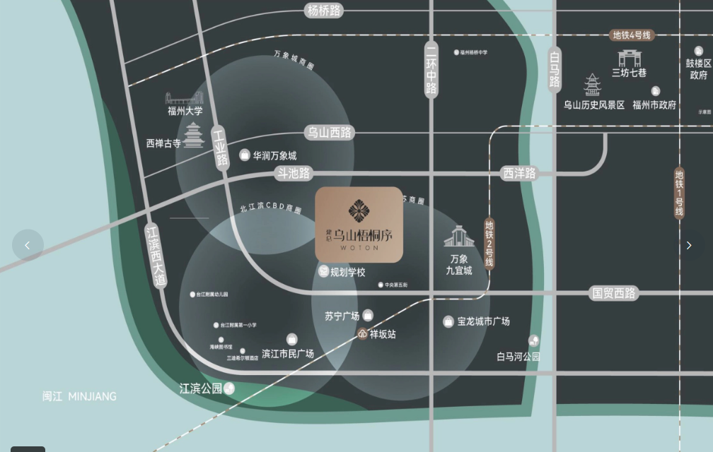 建总·乌山梧桐序位于福州台江区斗池路,与鼓楼区仅一路之隔,属于福州传统的文化、政治与经济核心区域。