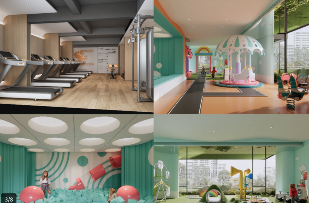 约107-116平方米改善型户型则更加注重居住舒适度和功能完善性。这些户型多采用南北通透设计,客厅与餐厅形成宽敞的家庭公共空间,部分户型还带有阳台或飘窗,增加了居住的延伸感。 03 社区配套,全维生活触手可及