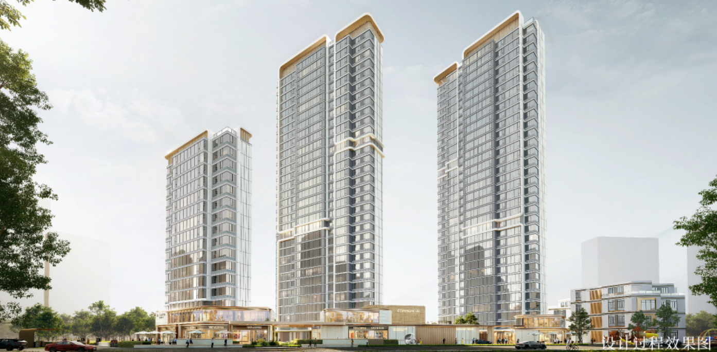 外立面设计上,项目采用现代公建立面风格,以浅灰色为主基调,运用石材、铝板、Low-E全景玻璃幕墙结合,勾勒出简约而富有质感的轮廓。项目还注重园林景观设计,打造“一芯一街六雅境”的园林景观。