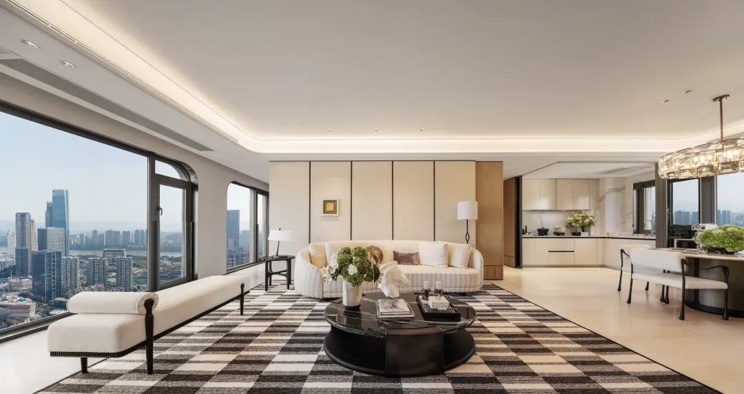 户型设计上,项目面积覆盖127-265㎡,全部采用两梯两户纯板楼设计,确保圈层纯粹性。主力143㎡四房户型采用四开间朝南设计,180㎡端户配备270°转角飘窗,部分高层可对望闽江北天际线和闽江。