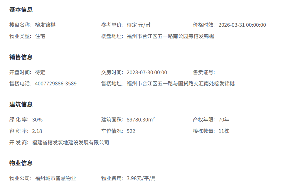 交房时间是购房者最关心的实际问题。根据官方信息,榕发锦樾计划于2028年竣工交付。